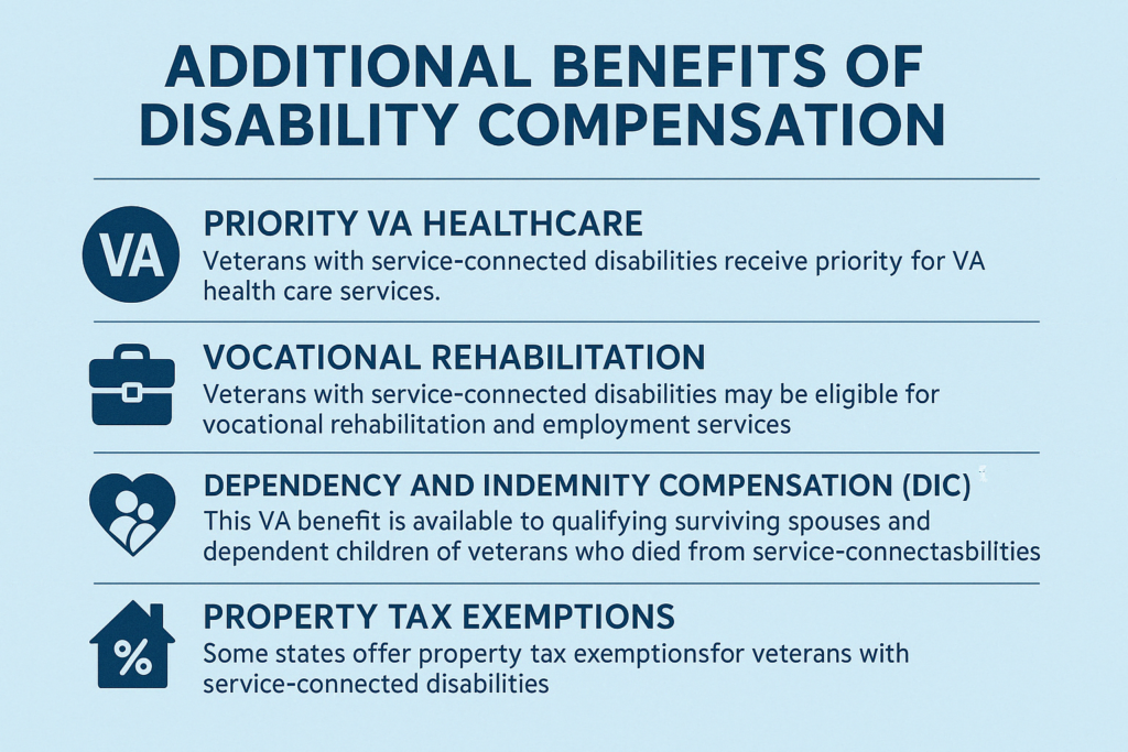 Disability Compensation offers several additional benefits beyond monthly payments: